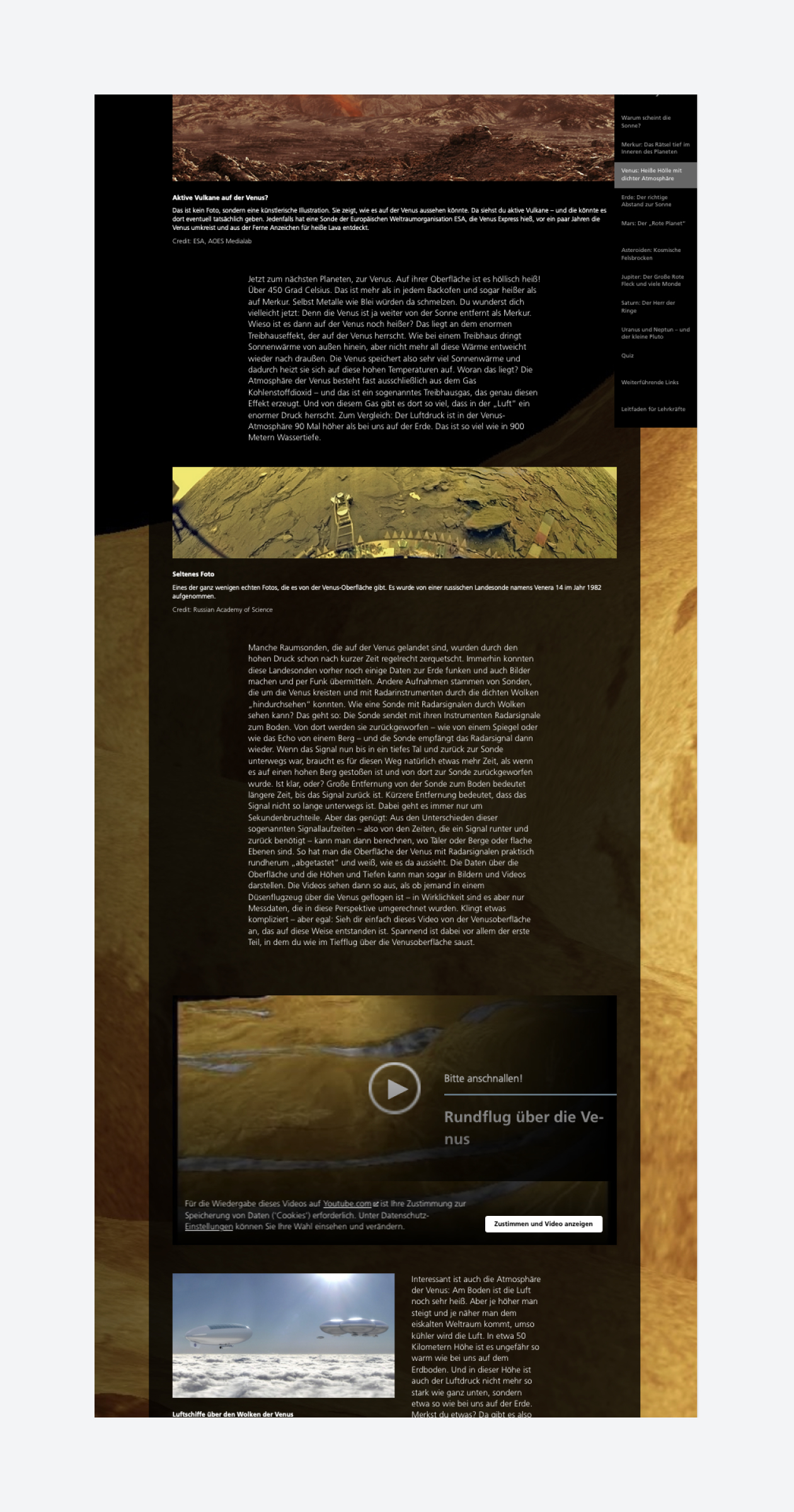 Das Portal musste sowohl eine junge, medienaffine Zielgruppe begeistern als auch pädagogische Anforderungen erfüllen. Gleichzeitig galt es, eine barrierefreie, zukunftssichere Plattform zu schaffen, die den hohen Sicherheits- und Datenschutzstandards des DLR entspricht. Die Inhalte sollten multimedial, leicht zugänglich und flexibel erweiterbar sein – ohne dabei die redaktionelle Pflege zu verkomplizieren.