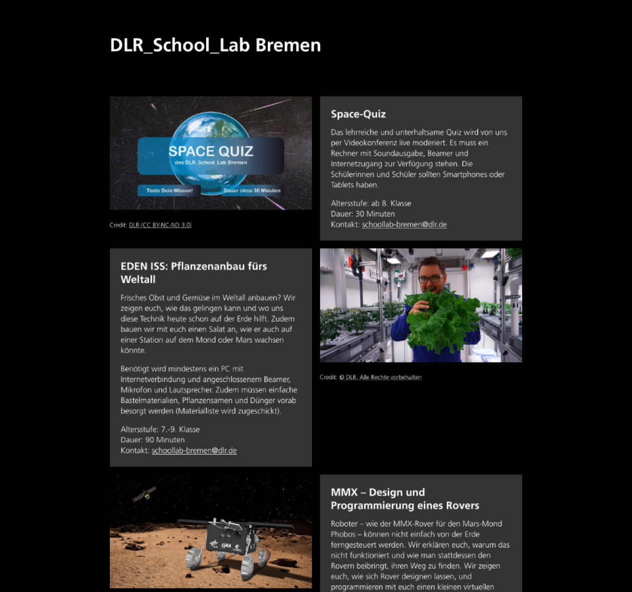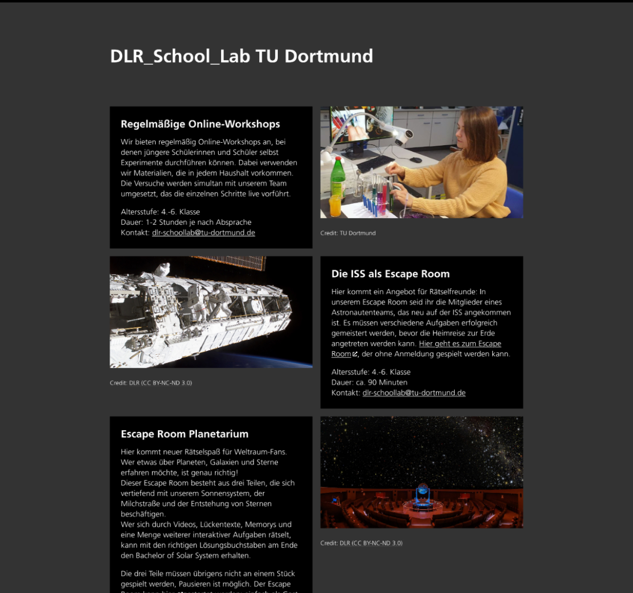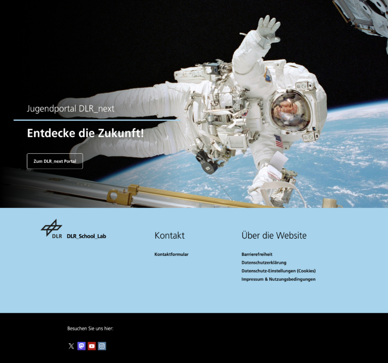 Der Webauftritt des DLR_School_Lab musste sowohl für Lehrkräfte als auch für Schülerinnen und Schüler attraktiv, leicht zugänglich und informativ sein. Eine intuitive Navigation, schnelle Ladezeiten und ein responsives Design für mobile Endgeräte standen im Fokus. Zudem sollten die Inhalte einfach durch das Redaktionsteam pflegbar sein, ohne technische Vorkenntnisse vorauszusetzen.