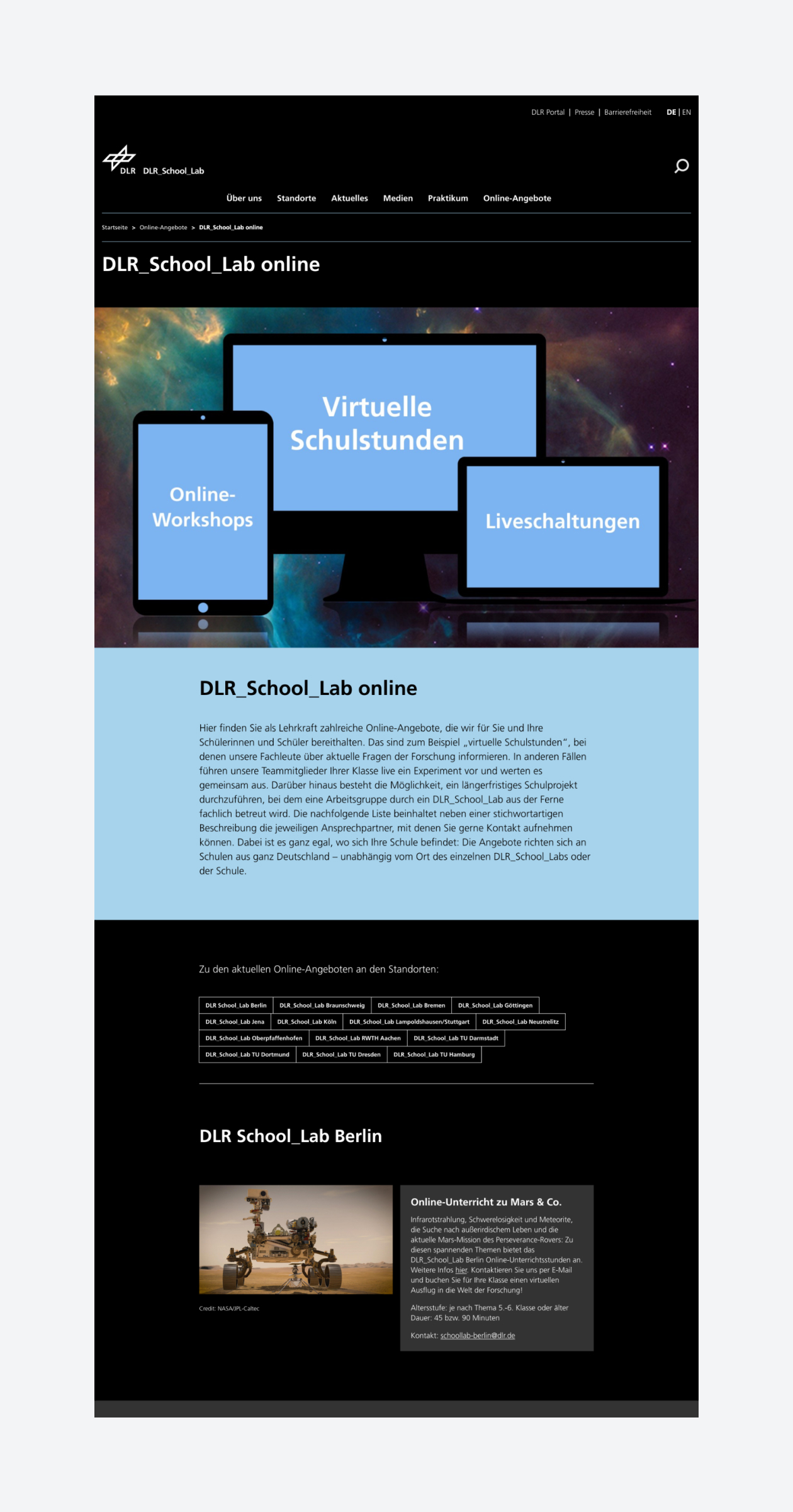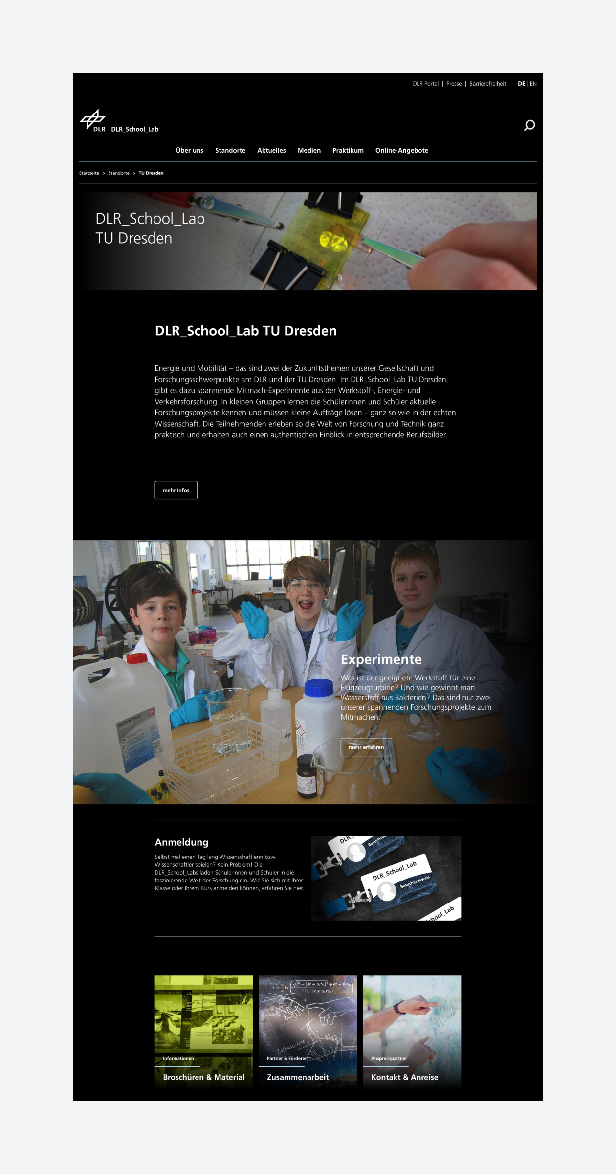 Eine moderne, ansprechende Website für die DLR_School_Labs, die junge Menschen für Wissenschaft und Forschung begeistert und Nachwuchsförderung digital erlebbar macht.