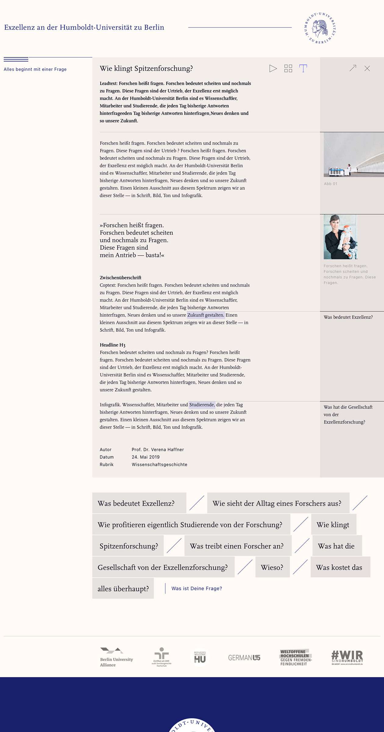 Exzellenzforschung neu erzählt: „Alles beginnt mit einer Frage“ – Webspecial der HU Berlin mit Plone 5 und Volto