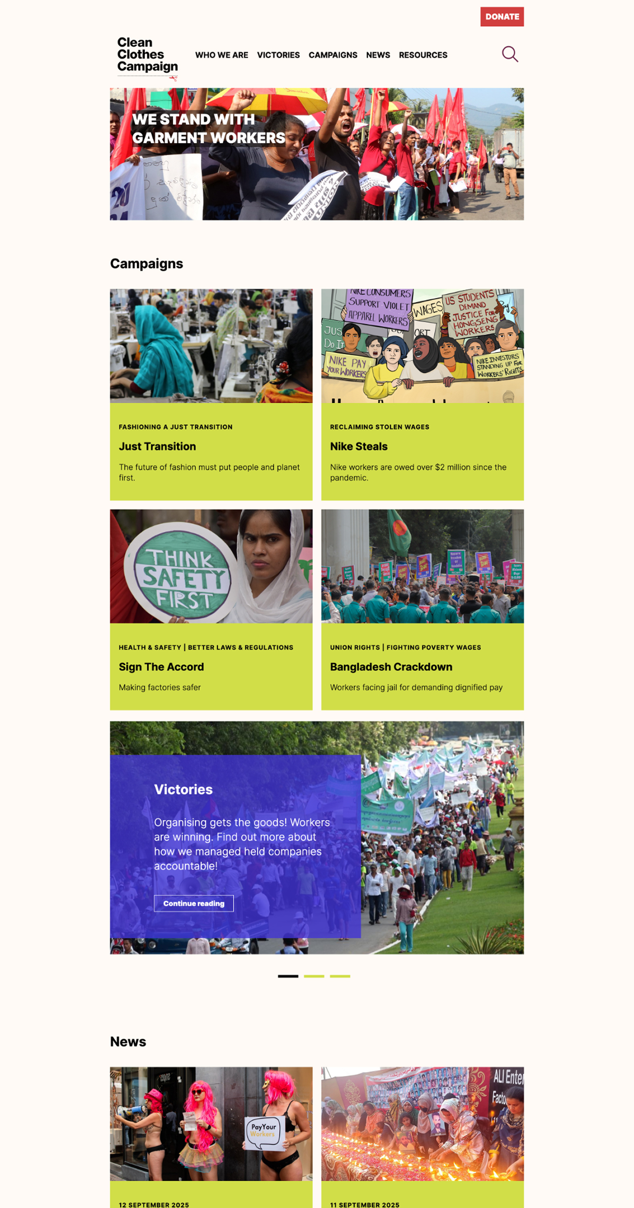 Clean Clothes Campaign verfügt jetzt über eine Website, die die Werte der Organisation spürbar macht – eine digitale Plattform für globale Solidarität und Wandel.