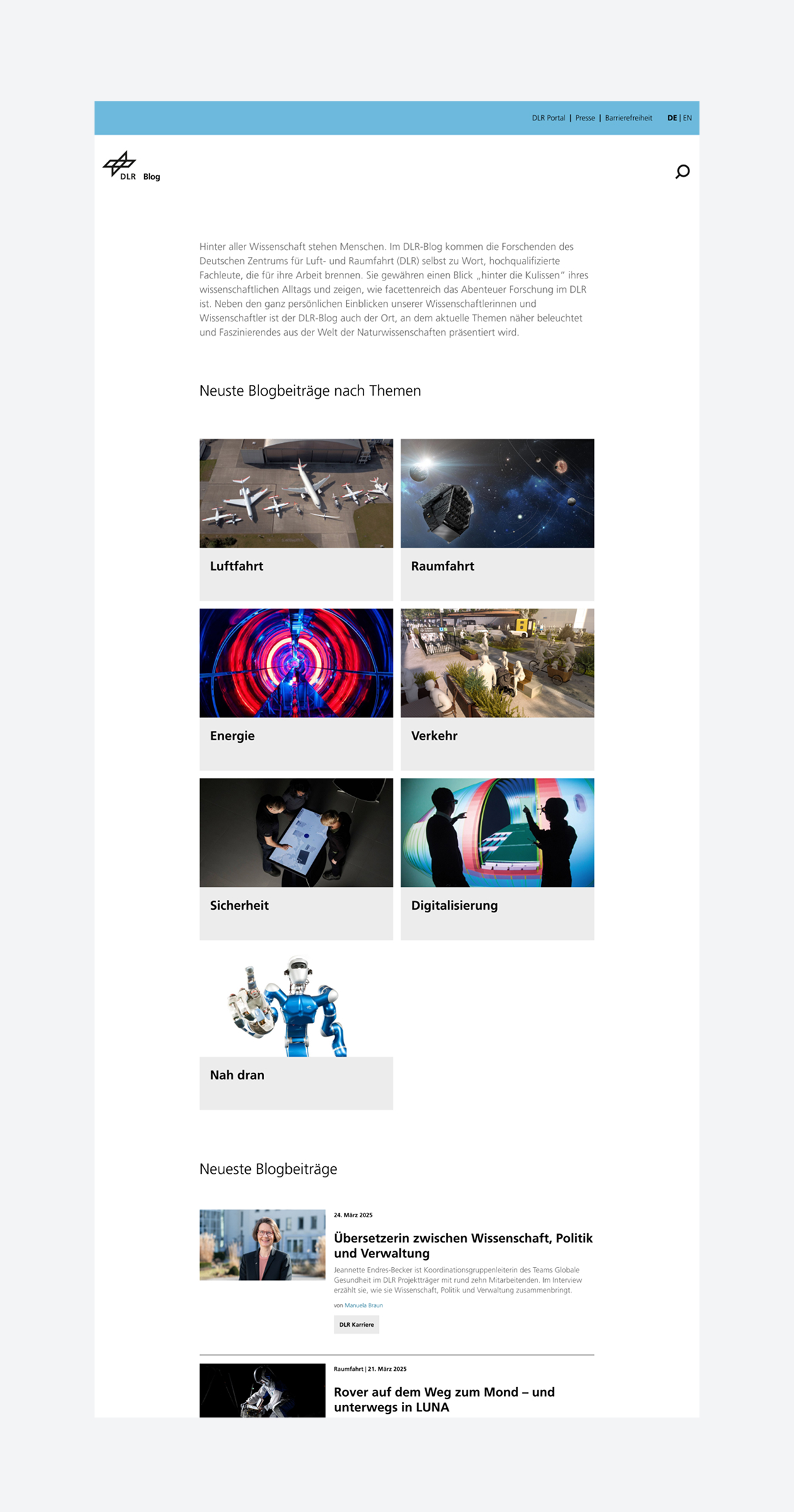 Relaunch DLR Blog – Moderne Wissenschaftskommunikation