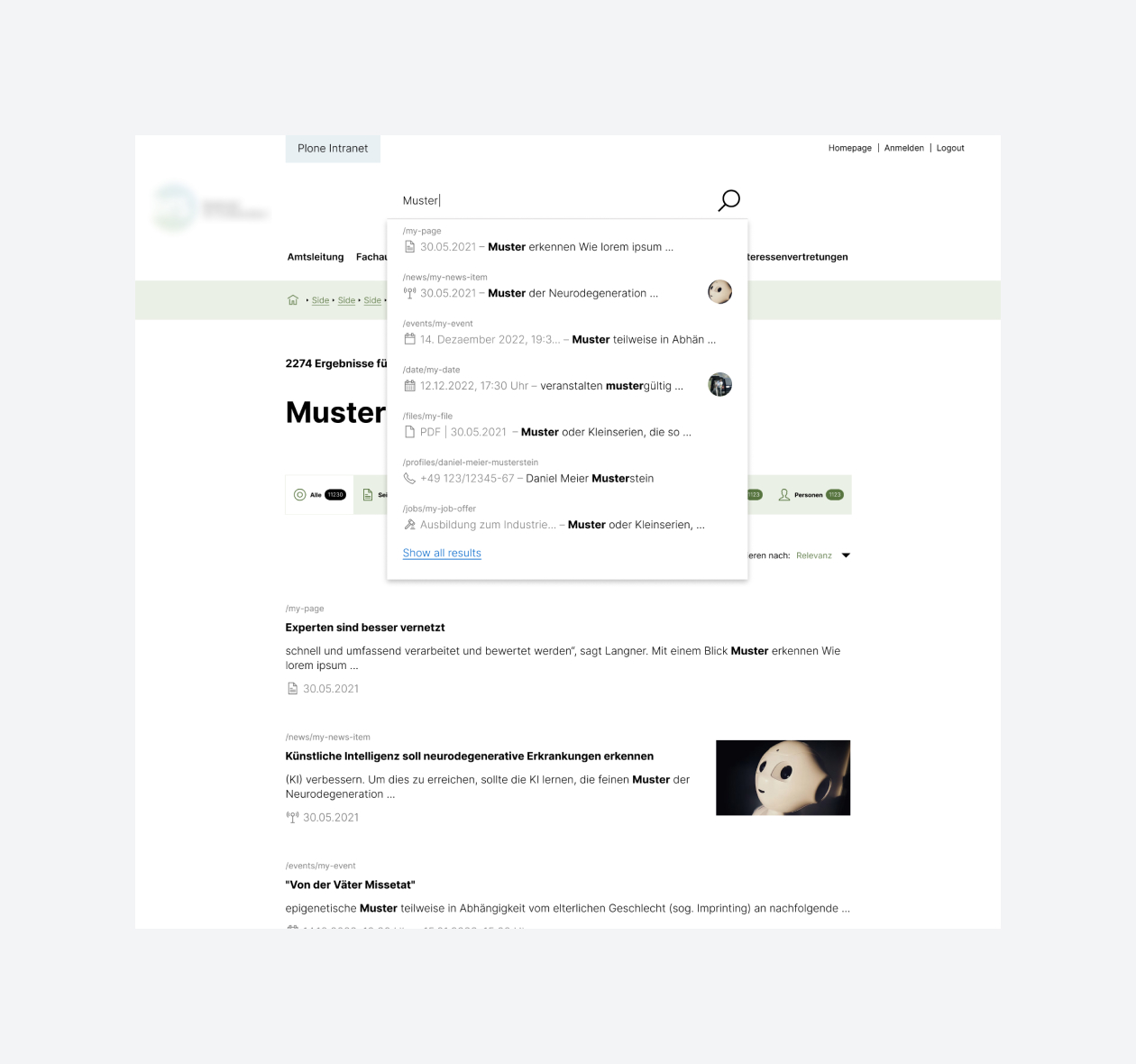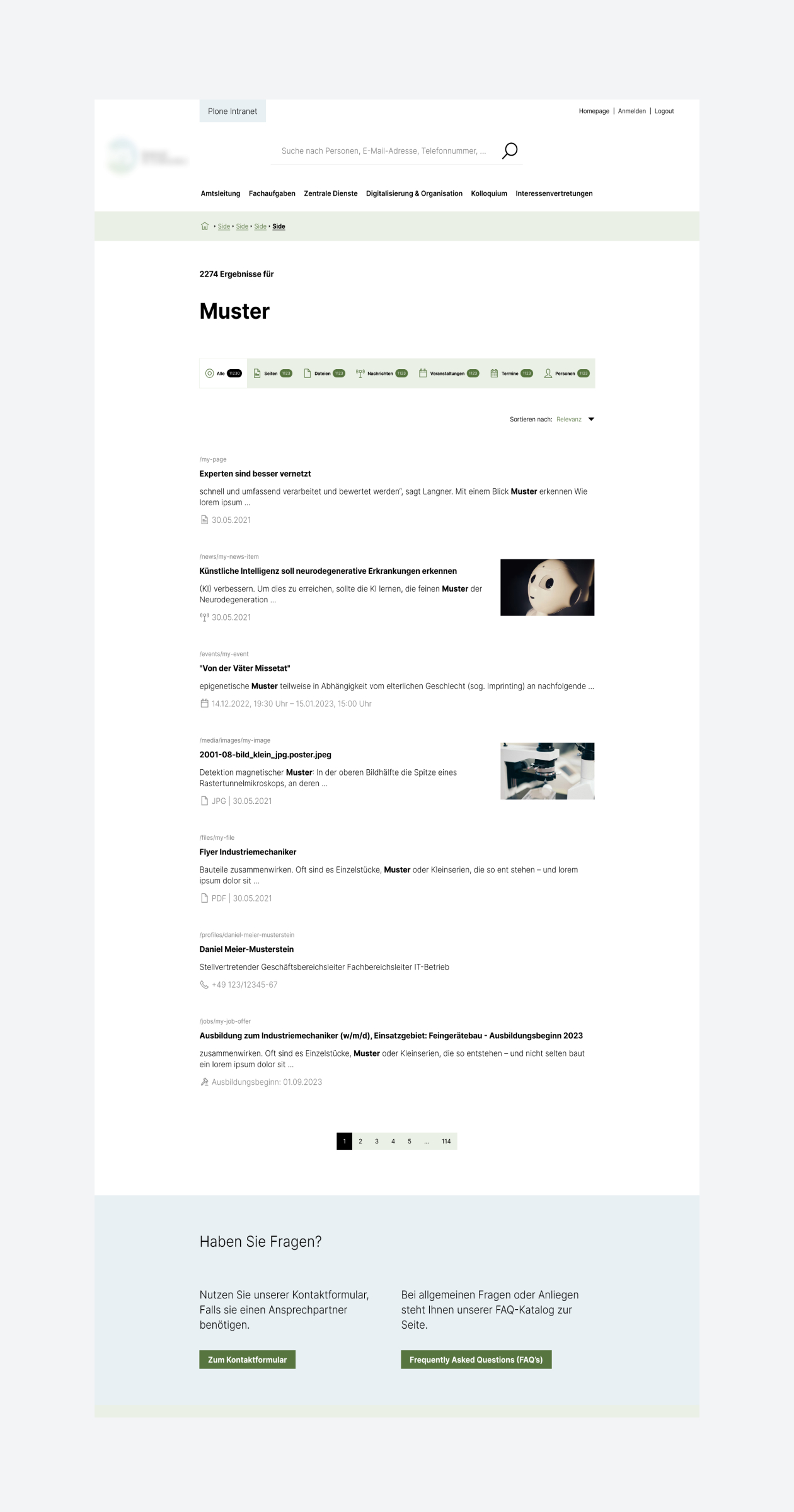 Mit der Migration auf Plone 6 in Kombination mit dem Volto Light Theme entstand eine moderne, barrierearme Benutzeroberfläche. Die Implementierung von Apache Solr als Suchbackend brachte eine völlig neue Qualität der Informationssuche: