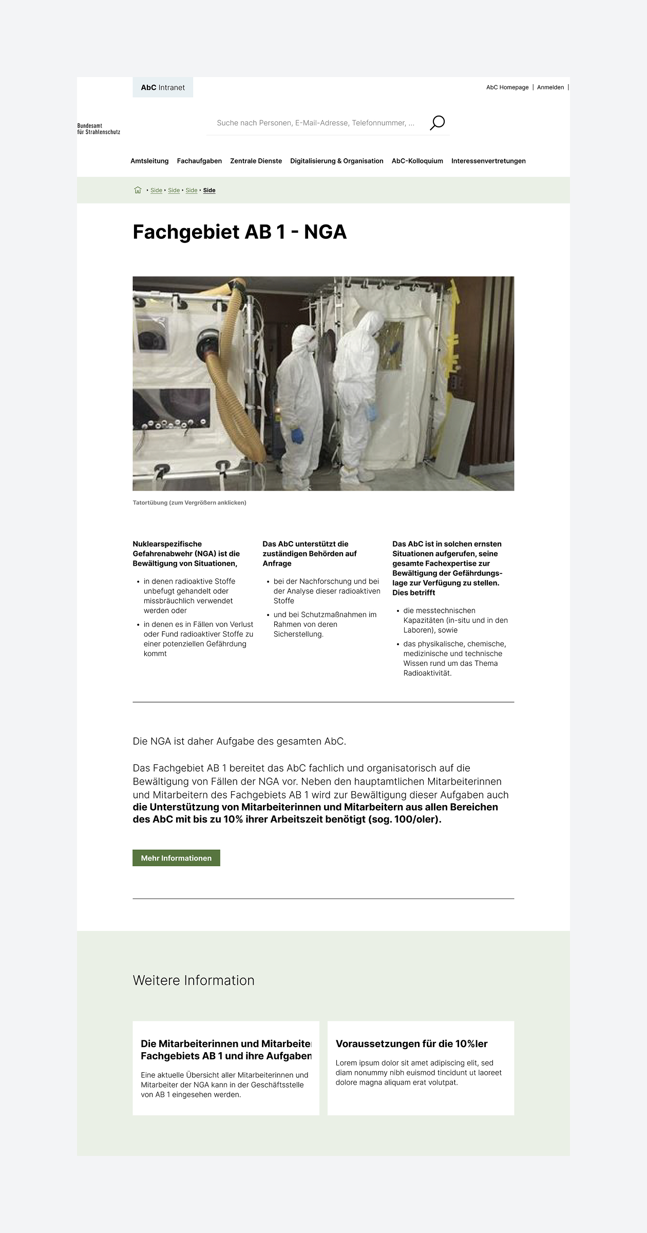 Die bestehende Intranet-Lösung der Bundesbehörde basierte noch auf Plone 2.5 – einer inzwischen stark veralteten Version. Die Benutzeroberfläche von Plone 2.5 entsprich nicht mehr den heutigen Standards und Anforderungen, wichtige Funktionen fehlten oder waren nur eingeschränkt nutzbar. Eine zeitgemäße, leistungsstarke Suche gab es nicht, und die Integration von Personendaten in den Arbeitsalltag war nur rudimentär vorhanden.