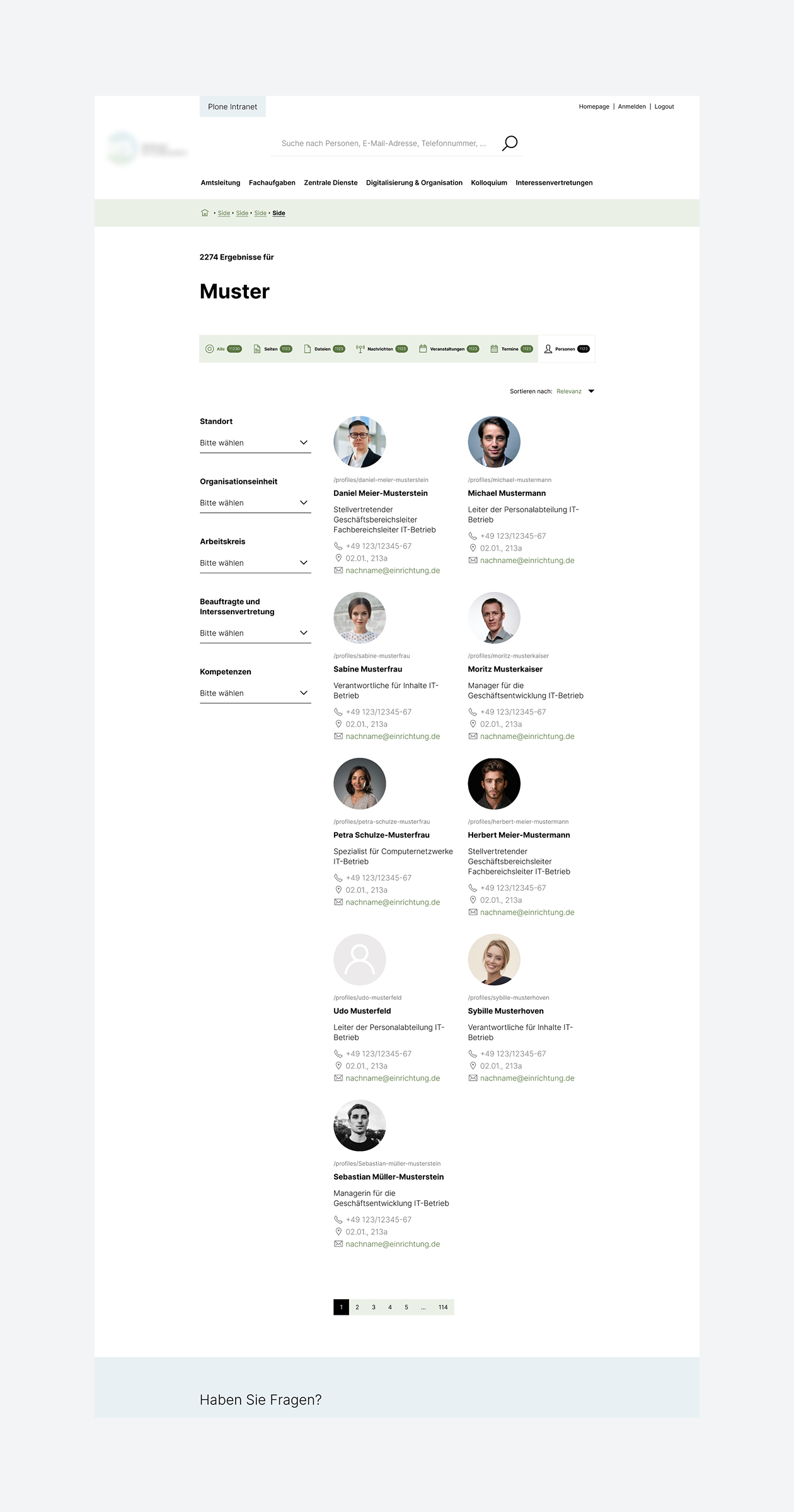 Facettierte Ergebnisse: Filterung nach Themen, Standorten, Organisationseinheiten, Kompetenzen u. v. m.