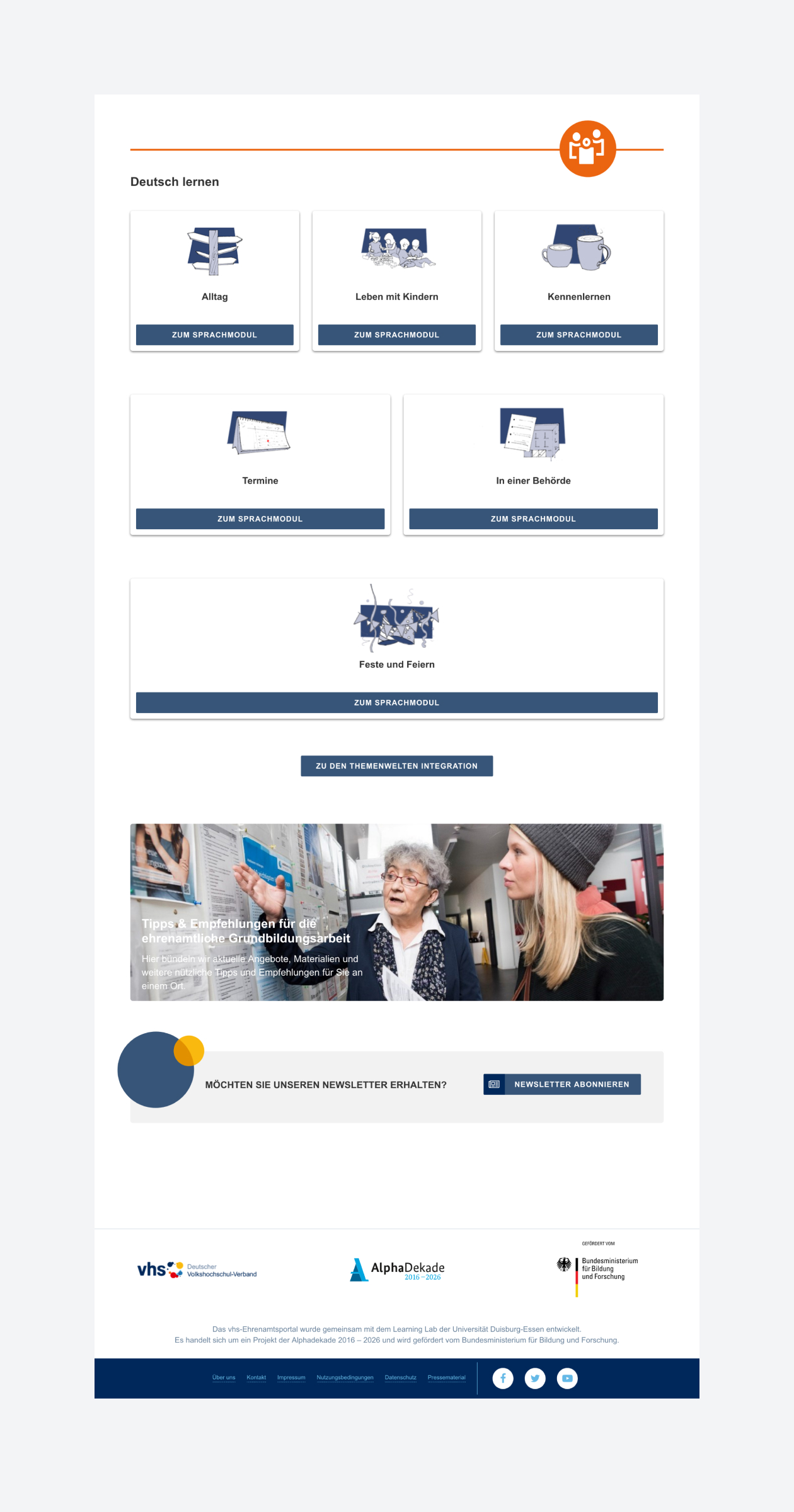Das VHS Ehrenamtsportal unterstützt ehrenamtliche Helfer in der Flüchtlingsarbeit mit einem modernen, digitalen Lernportal auf Basis von Plone 5 und Volto.