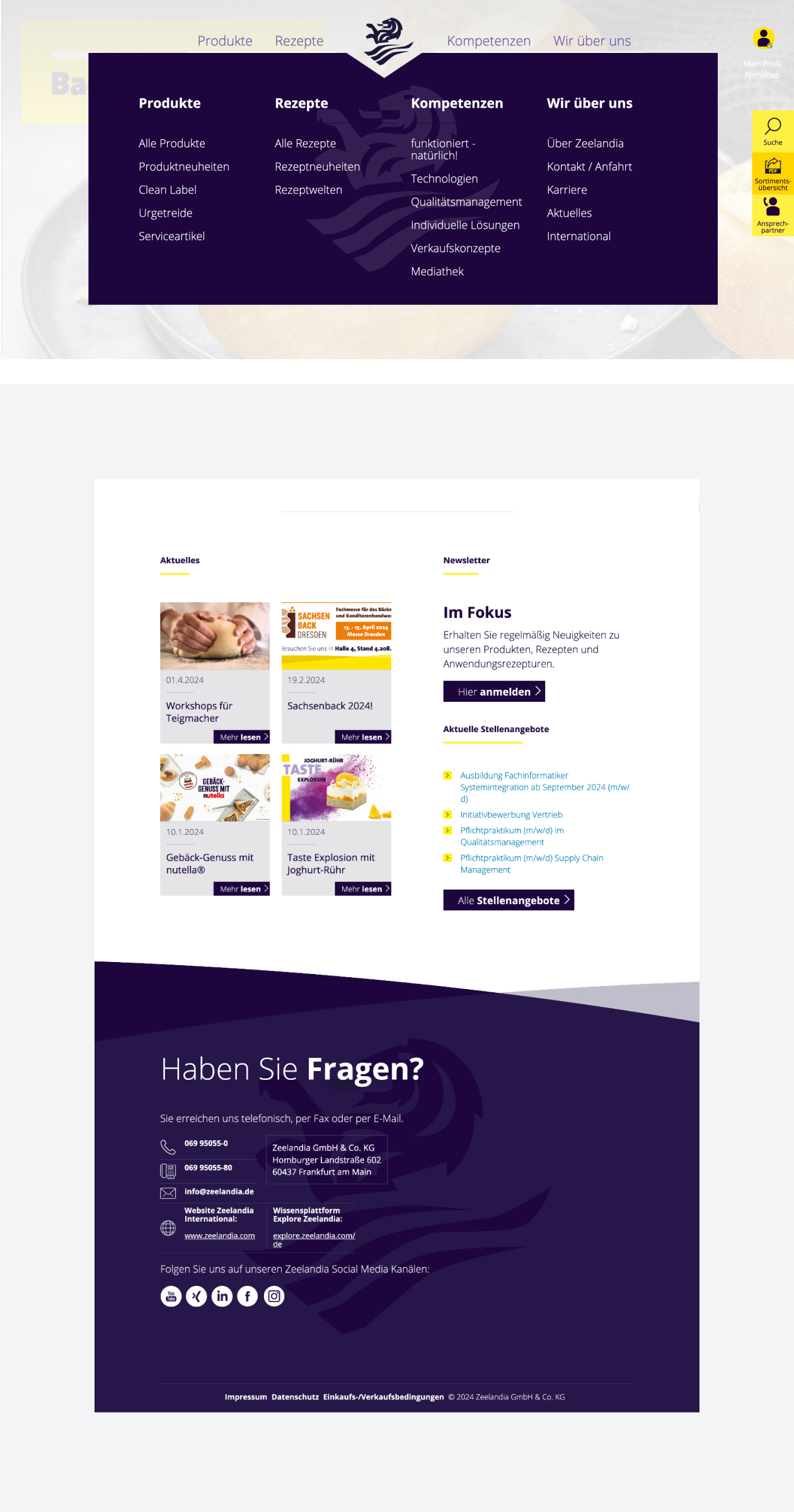 Seit 2004 begleiten wir die Website zeelandia.de. 2018 wurde die Website mit einem neuen Webdesign mit Plone 5 und Volto neu gestaltet.