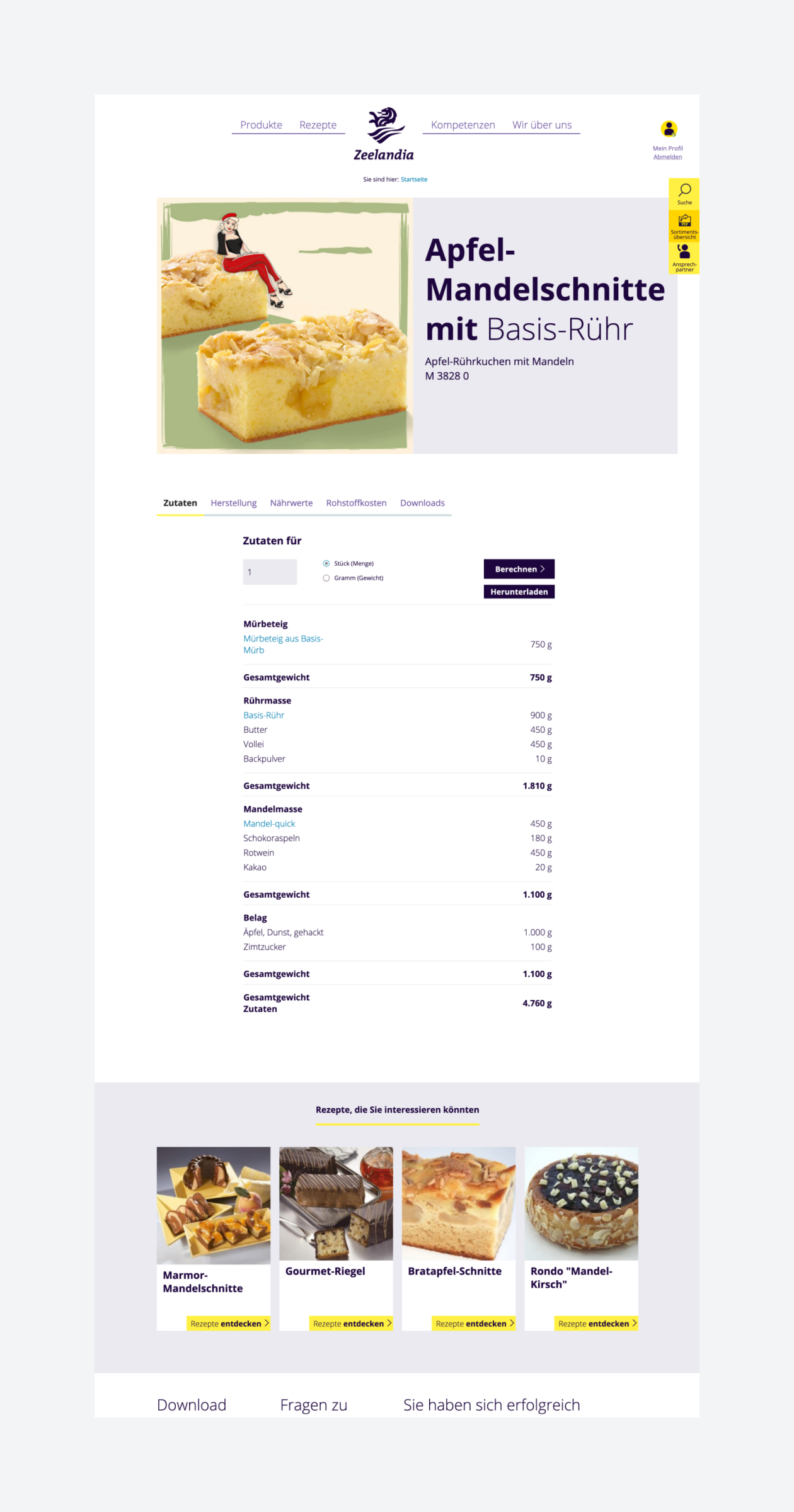 - ✔ Datenbank & Suche: Eine leistungsfähige Apache-Solr-Suche ermöglicht es Nutzern, schnell durch Rezepte, Produkte und Bilder zu navigieren.