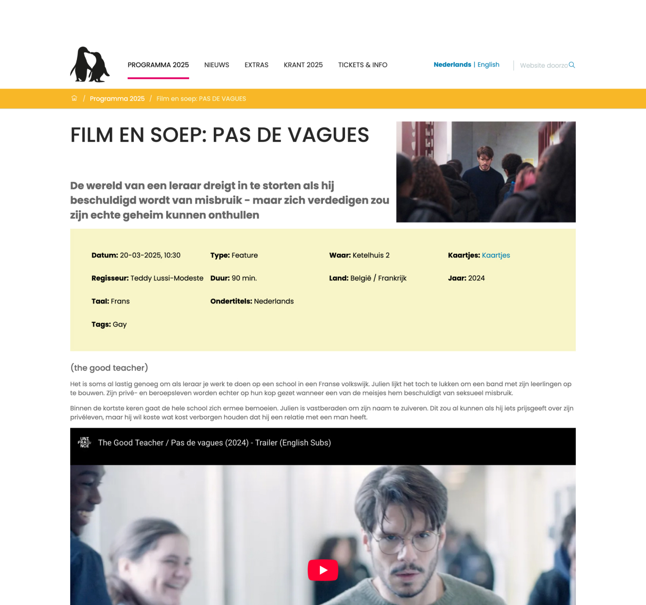 Roze Filmdagen ist eines der bedeutendsten queeren Filmfestivals Europas und zugleich das größte und älteste LGBTQ+-Filmfestival der Niederlande.