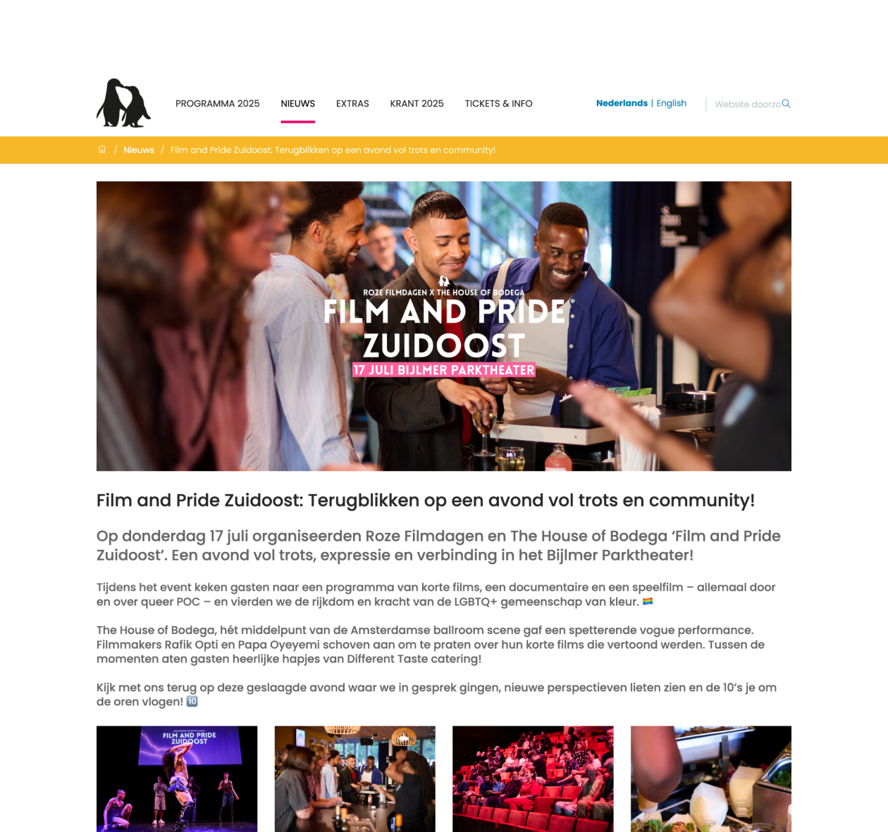 Wir sind stolz, Roze Filmdagen mit moderner Technologie und echter Überzeugung zu unterstützen.