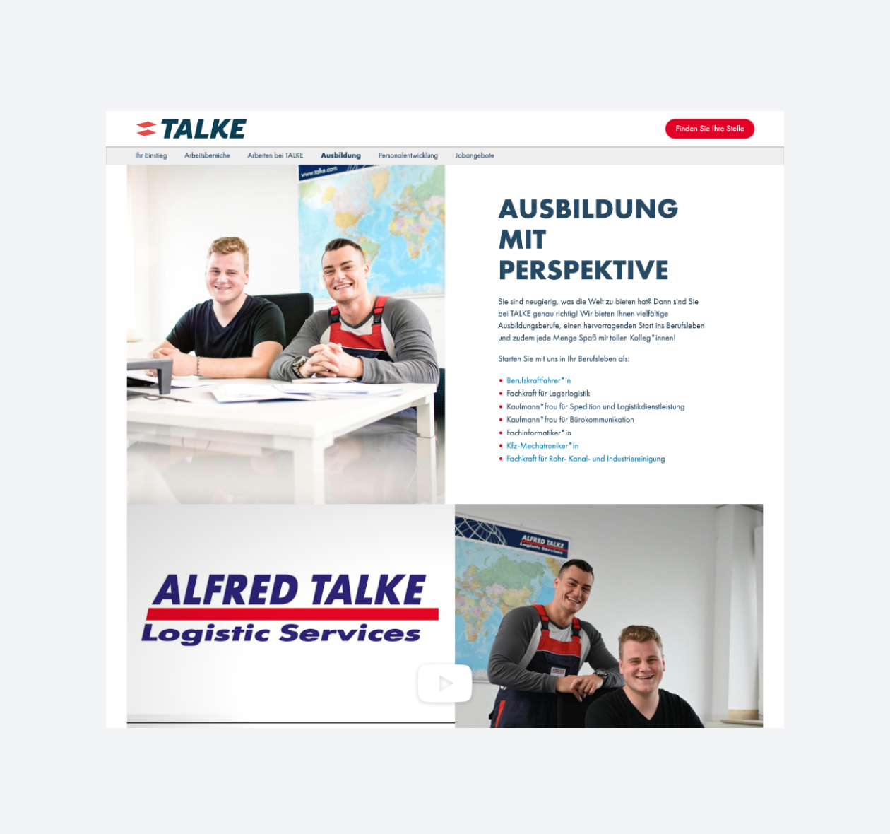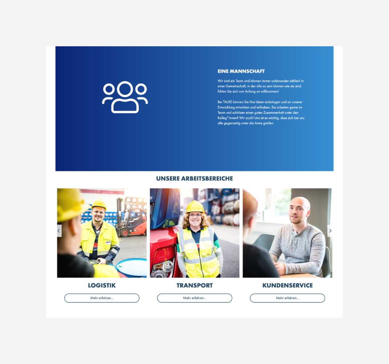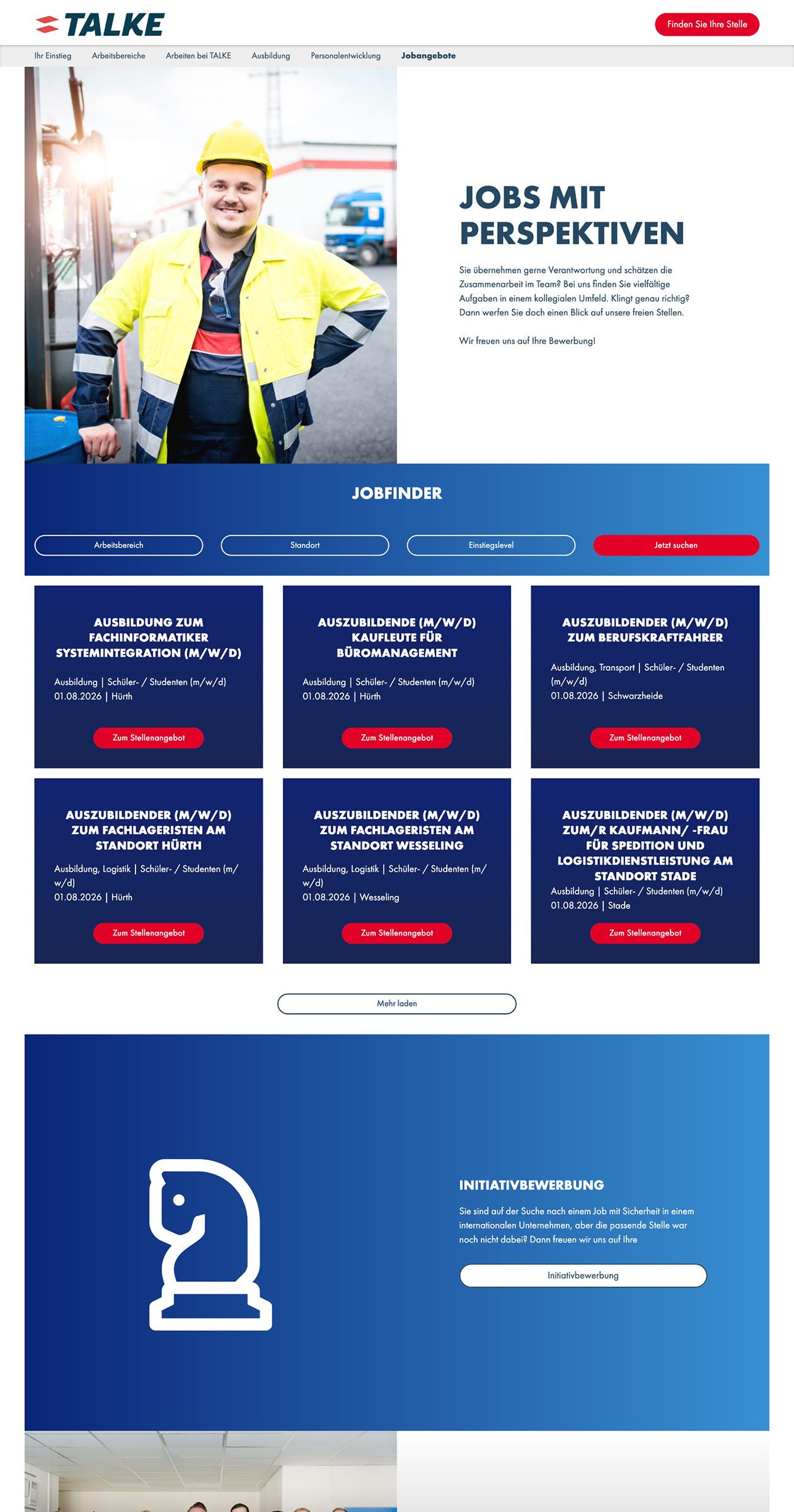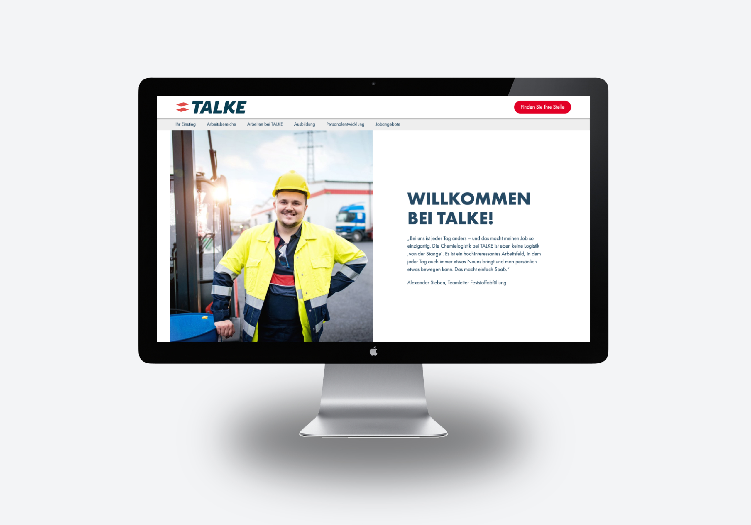 Eine klare, moderne Karriereseite, die TALKE als attraktiven Arbeitgeber sichtbar macht und Bewerber:innen gezielt zum Einstieg führt.