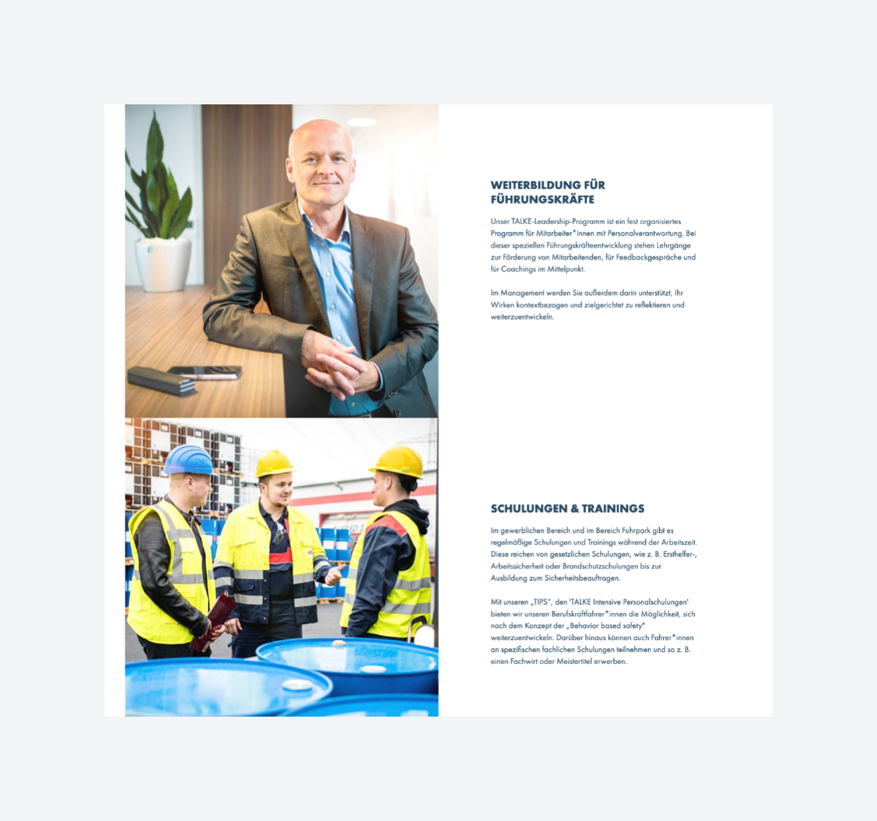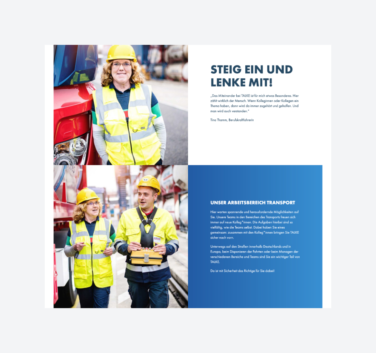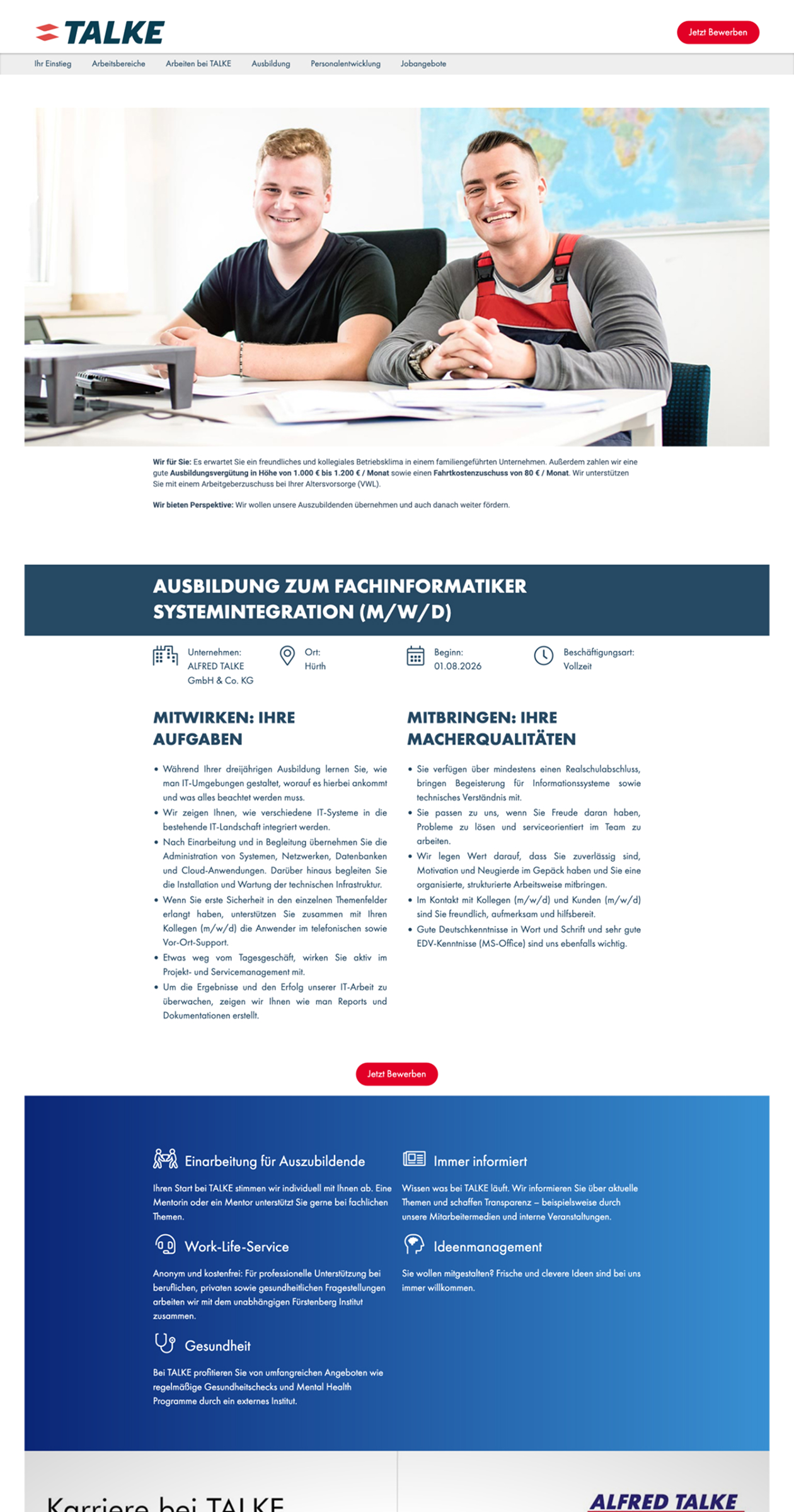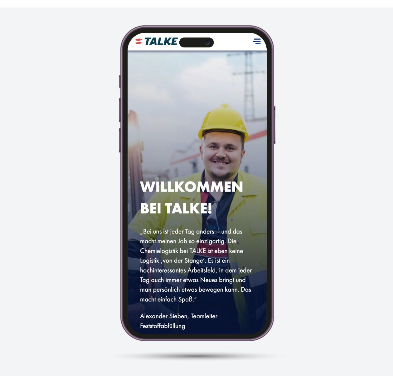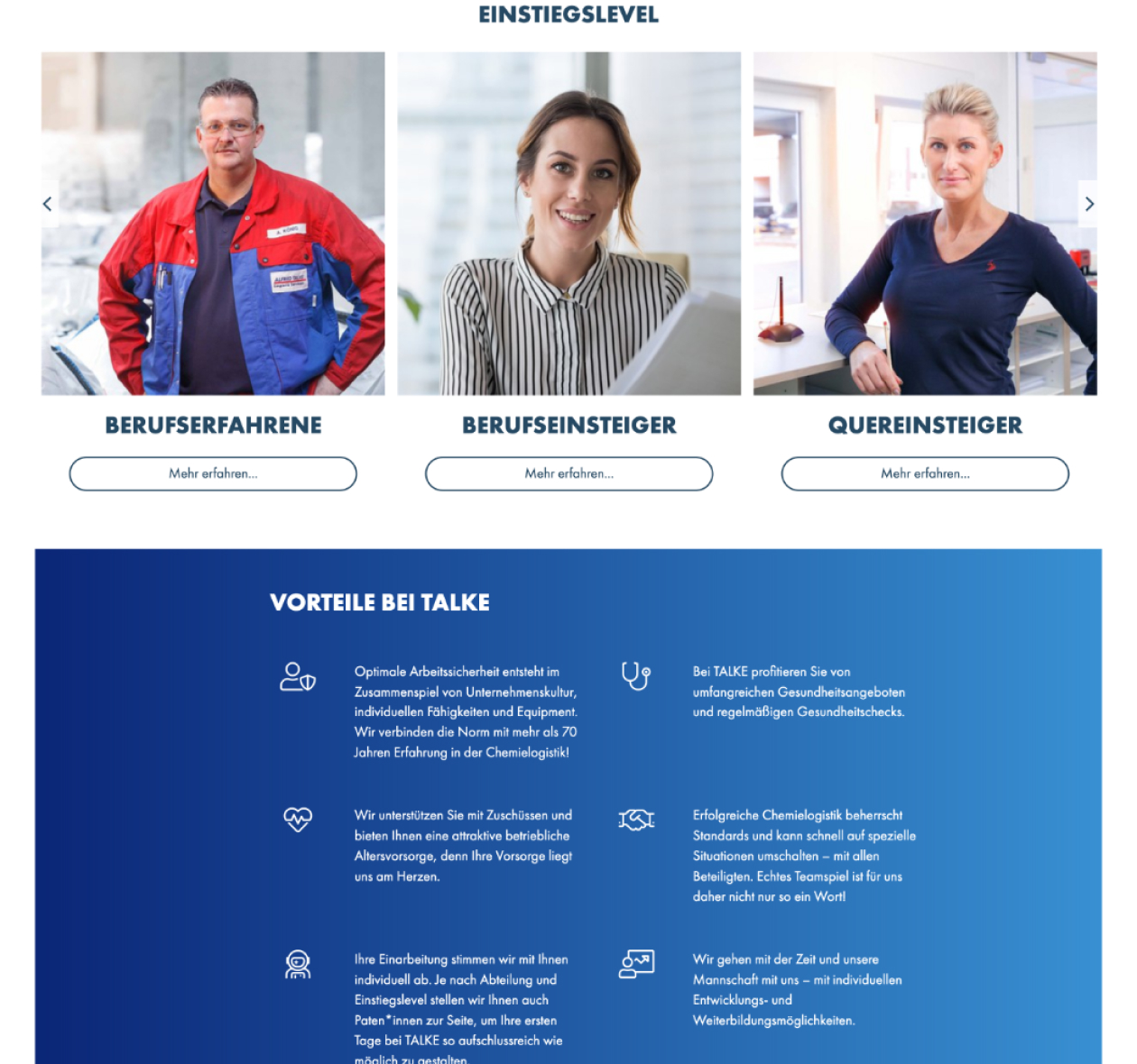 Eine klare, moderne Karriereseite, die TALKE als attraktiven Arbeitgeber sichtbar macht und Bewerber:innen gezielt zum Einstieg führt.