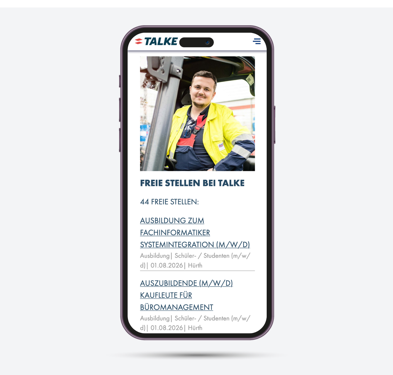 TALKE profitiert heute von einer modernen, mobilen und markenstarken Karriereseite, die Interessent:innen klar leitet und Bewerbungsprozesse deutlich vereinfacht.